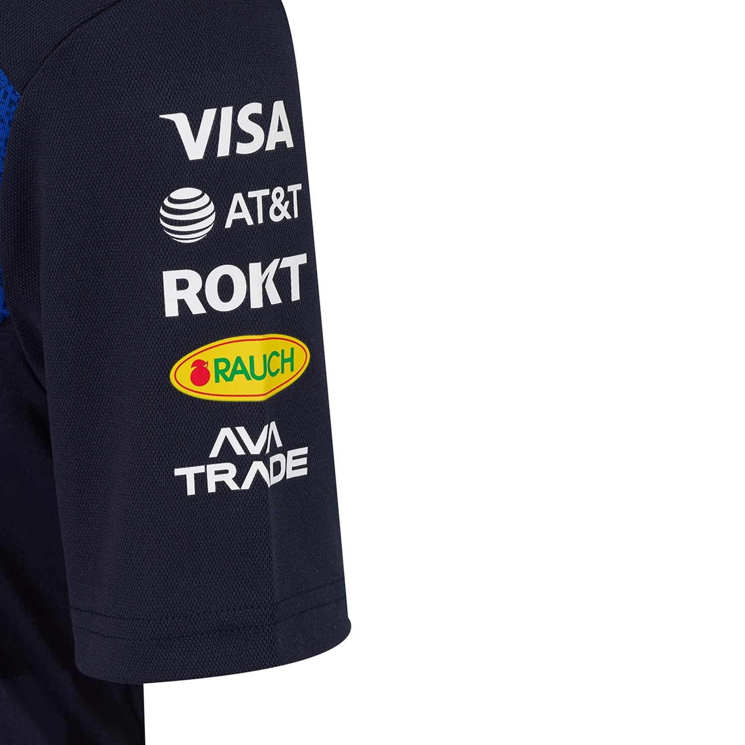 • شعارات العلامة التجارية والرعاة وكاستور بطباعة حرارية على الصدر والأكمام والكتفين والياقة وأعلى الظهر