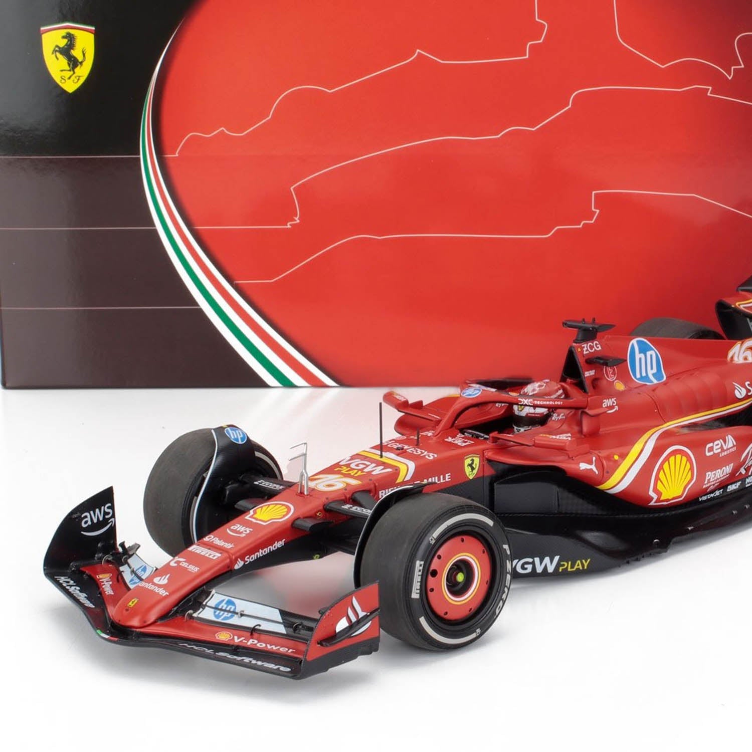 Celebrate an iconic victory on home soil with this 1:18 scale model of the Ferrari SF-24, driven by Charles Leclerc to a historic win at the 2024 Monaco Grand Prix.