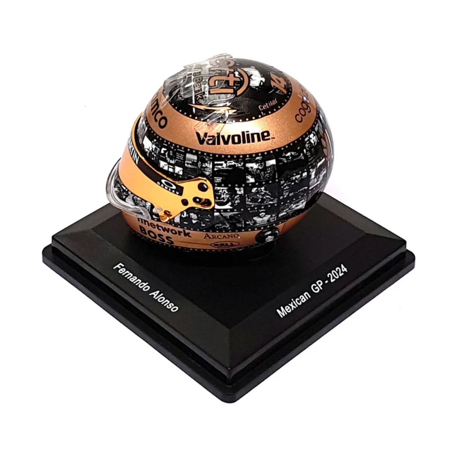 Celebrate a monumental milestone in Formula 1 history with this 1:5 scale mini helmet of Fernando Alonso from the 2024 Mexican Grand Prix. This special edition helmet marks Alonso’s 400th Grand Prix start—a rare and historic achievement in the sport. Featuring a unique race-specific design and commemorative graphics, it’s a must-have for collectors and fans honoring one of the most enduring careers in F1.